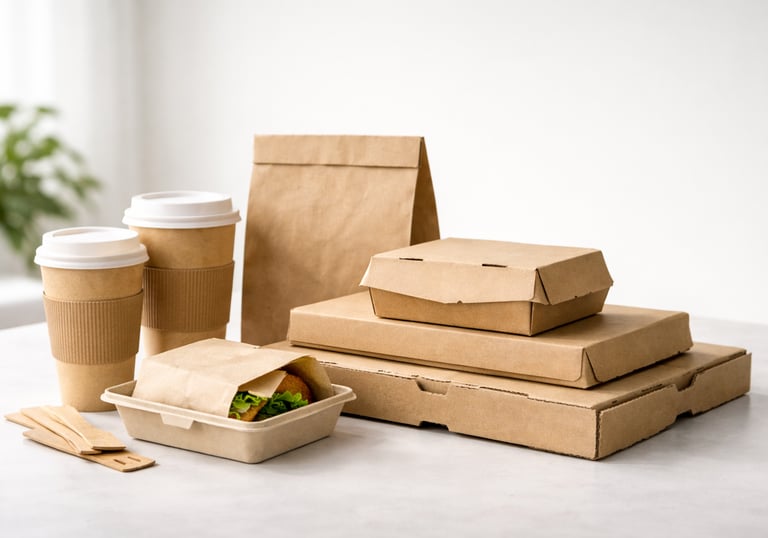 Sacs kraft, cartons, coffee cups, lunch boxes et emballages sur mesure pour valoriser votre marque.