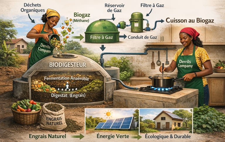 Nous transformons les déchets alimentaires en énergie verte en produisant du biogaz, une solution propre, durable et accessible qui alimente de nombreux ménages au quotidien. Porteurs d’un fort impact environnemental et social, nous construisons un modèle innovant et local de transition énergétique, ouvert aux appuis techniques, aux partenariats stratégiques et aux soutiens financiers pour accélérer notre croissance et maximiser notre contribution au développement durable.